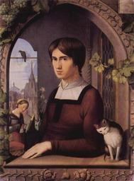 Keywords: Friedrich Overbeck 010.jpg Artwork Creator Friedrich Overbeck de Porträt des Malers Franz Pforr 1810 Oil on canvas cm 62 47 Institution Alte Nationalgalerie de Nazarener The Yorck Project 10 000 Meisterwerke der Malerei DVD-ROM 2002 ISBN 3936122202 Distributed by DIRECTMEDIA Publishing GmbH http //mail wikipedia org/pipermail/wikide-l/2005-April/012195 html other versions PD-old-100 PD-Art-YorckProject Friedrich Overbeck 1810 19th-century portrait paintings in the Alte Nationalgalerie 1810c Franz Pforr 1810s paintings in Germany 1810 oil on canvas paintings Portrait 1810 portrait paintings from Germany Male 19th-century men looking at viewer in art 19th-century oil on panel paintings 19th-century paintings of cats 19th-century oil on canvas paintings in Germany 19th-century oil portraits of men at half length 1810 19th-century portrait paintings in Germany 1810 19th-century portrait paintings with birds 1810 19th-century portrait paintings with cats 1810 Lilies in art Males with cats in art Oil paintings of birds Portrait paintings of men with animals 1810c Portrait paintings of painters 1810c Portraits through a window 1810c Romantic portrait paintings Three-quarter view portrait paintings of men facing left