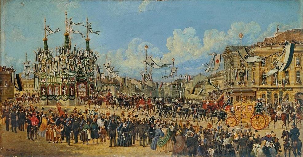 | Keywords: Friedrich-Wilhelm Klose - König Wilhelms I. in Berlin nach seiner Krönung in Königsberg.jpg Einzug König Wilhelms I in Berlin nach seiner Krönung in Königsberg http //www arcadja com/auctions/en/private/klose_friedrich_wilhelm/artworks/15517/0/ Villa Griesebach via ARCADJA auction results 1861 Creator Friedrich Wilhelm Klose oil canvas cm 39 5 75 object history credit line accession number PD-old-100 Coronation of William I of Prussia Schlosskirche Friedrich Wilhelm Klose Wilhelm I of Germany Paintings of Berlin 1861 paintings Images from Villa Grisebach Auktionen 1861 in Berlin Alexanderplatz in the 19th century Königsstädtisches Theater |