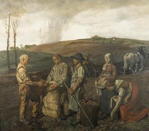 Keywords: Fritz Boehle - Kartoffelernte (1899).jpg Fritz Boehle 1873-1916 1899 technique oil canvas cm 152 170 http //www morgenweb de/nachrichten/kultur/letzte-spuren-einer-sammlung-1 627540 Mannheimer Morgen 28 06 2012 - Letzte Spuren einer Sammlung object history Adolph Bensinger Mannheim by 1916 ; his forced sale Nagel Mannheim 20 February 1940 lot 34 <br/>Dr Hanisch possibly purchased at the above sale <br/>Kunsthandlung J P Schneider Frankfurt am Main by 1972 <br/>Polytechnische Gesellschaft by 1972 <br/>Frankfurter Sparkasse<br/>Estate of Adolph Bensinger in 2012 credit line F Boehle 1899 lower right signature and date accession number http //www sothebys com/de/auctions/ecatalogue/2012/c19th-european-paintings-inc-greek-l12102/lot 43 html Sotheby's London 20 November 2012 lot 43 PD-old-auto-1923 1916 Fritz Boehle Harvest in art 1899 paintings Images from Sotheby's