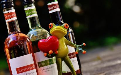 Keywords: frog love celebrate wine drink restaurant weinstube alcohol fig funny cute bottles wines germany france spain sweet enjoy benefit from frogs wine bottle
