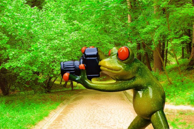 Keywords: frog photographer funny fun camera green animal park trees are photograph keep smiling