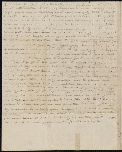 Keywords: From Deborah Weston to Anne Warren Weston; Sunday, January 1, 1837 p4.jpg Page p 4 Call Number Ms A 9 2 v 9 n 1 Format Autograph Letter Signed Extent 4 p 9 3/4 x 7 3/4 in Creator Weston Deborah 1814-1889 Date of creation 1837-01-01 Place of creation New Bedford MA Recipient Weston Anne Warren 1812-1890 BPL department Rare Books Transcription if I can by this opportunity but if I do not she must attribute it to my headache and hurry Now Capt Northam is talking so I can hardly tell what I write Monday night I had just finished writing the enclosed note to Ann Chapman was preparing to do up my letters in a great hurry when Mr Bent came in to say that he had put off going till tomorrow If you don ™t come down with him this time be sure write by him at great length You did finely when you wrote last Don ™t intimate the least word to Mr Bent that I wrote any thing about you coming or expected you in the least You know he is fond of surprises I wish you would write to me by mail before Mr Bent comes back for he will stay some time I know Tell me when Aunt Mary goes to Duxbury for I want to write to her there I forgot to tell you when I was giving you an account of my success in petitioning that Louisa Sawyer signed Mrs Bent was going to only her husband did not approve though he did not object to her signing She acknowledged that her only motive was to please me Abby Osgood signed then scratched her name out You see what a backslider she is She and I get along very well together though I get along pretty well with my Italian with her assistance You need do nothing about an Italian dictionary for I have two Abby sent home for hers Henry Lee got me one from the Academy Library My headache is entirely gone today but I had it dreadfully yesterday In order to see what I could do to day I fell down twice didn ™t hurt myself in the least With love to all I am your most affectionately DW Flickr data on 2011-08-02 Camera Sinar AG Sinarback 54 FW Sinar m Tags dc identifier 08_07_000004 License CC BY 2 0 User Boston Public Library BPL Flickr http //flickr com/photos/24029425 N06/2653129072 From Deborah Weston to Anne Warren Weston; Sunday January 1 1837 2008-07-08 15 38 09 Weston Deborah 1814-1889 PD-old-100 User Flickr upload bot/upload 23 34 2 August 2011 UTC Fæ CC BY 2 0 Deborah Weston anti-slavery letters Photos uploaded from Flickr by Fæ using a script Taken with Sinarback 54 |