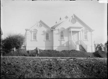 Keywords: blackandwhite monochrome outdoor architecture building landscape field black and white View of the Masonic Hall in Rodney Street showing the front facade. This Victorian building has classical styling with portico and columns surrounding the front door. A man can be seen shovelling soil on the road in front. Taken ca 1920s by William A Price. Inscriptions: Inscribed - Photographer's title on negative -bottom centre: Masonic Hall, Northcote, 2586. William Archer Price lived and practised in Queen Street, Northcote, 1909-1910. Source: New Zealand Post Office directories Quantity: 1 b&w original negative(s). Physical Description: Dry plate glass negative 4.5 x 6.5 inches Front view of the Masonic Hall, Northcote, Auckland. Price, William Archer, 1866-1948 :Collection of post card negatives. Ref: 1/2-001679-G. Alexander Turnbull Library, Wellington, New Zealand. natlib.govt.nz/records/23103619 View of the Masonic Hall in Rodney Street showing the front facade. This Victorian building has classical styling with portico and columns surrounding the front door. A man can be seen shovelling soil on the road in front. Taken ca 1920s by William A Price. Inscriptions: Inscribed - Photographer's title on negative -bottom centre: Masonic Hall, Northcote, 2586. William Archer Price lived and practised in Queen Street, Northcote, 1909-1910. Source: New Zealand Post Office directories Quantity: 1 b&w original negative(s). Physical Description: Dry plate glass negative 4.5 x 6.5 inches Front view of the Masonic Hall, Northcote, Auckland. Price, William Archer, 1866-1948 :Collection of post card negatives. Ref: 1/2-001679-G. Alexander Turnbull Library, Wellington, New Zealand. natlib.govt.nz/records/23103619 |