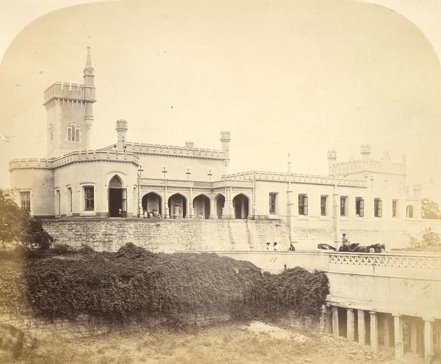 | Keywords: Front view of Mr Brett's house at Hosur, near Bangalore.jpg en Photographer Dixon Henry Medium Photographic print Date 1860 Photograph of a general view of the house known locally as The Castle from the Archaeological Survey of India Collections India Office Series volume 21 'a' numbers taken by Henry Dixon in the early 1860s Built in the form of a mediaeval castle by the Collector Mr Brett 1859-62 this building served as the divisional officer's 'bungalow' It was purchased by the Government in 1875 The family group gathered on the verandah is possibly the Bretts 1860 http //www europeana eu/portal/search html query hosur Dixon Henry PD-old Uploaded with UploadWizard Historical images of Hosur Tamil Nadu in the 1860s Henry Dixon photographer |