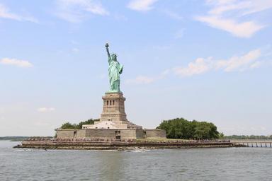 Keywords: travel skyscraper downtown cruise tower usa statue landmark majestic skyline liberty island statue of liberty building manhattan new york new york city iconic architecture city trade water