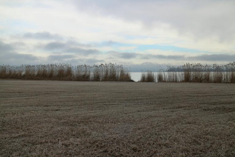 Keywords: frost hoarfrost mood meadow reed water demarcation romance harmony limit horizon line front front line