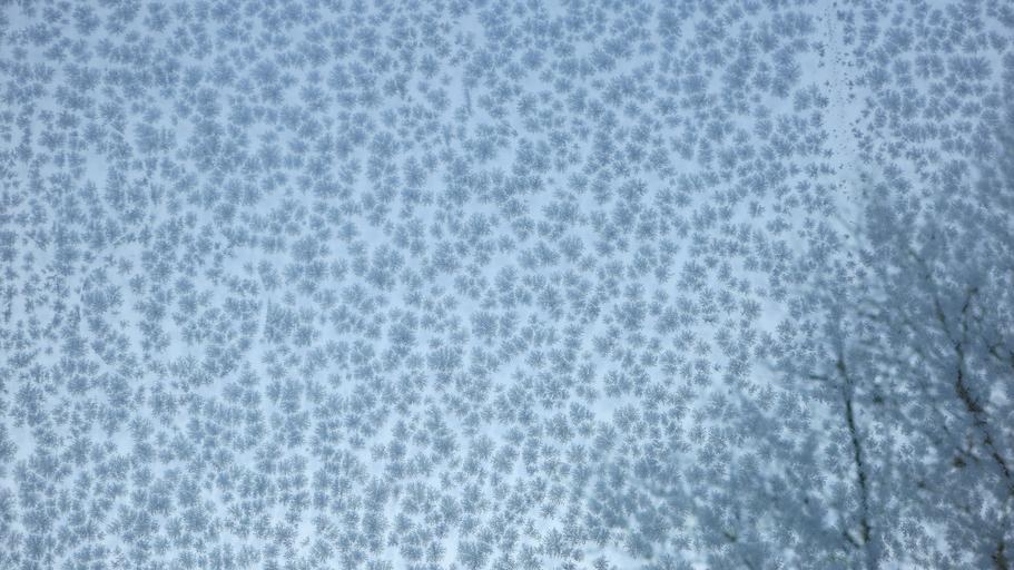Keywords: frost winter cold ice bald trees window hoarfrost crystals mirroring