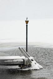 Keywords: frozen lantern ladder beach dock winter snow cold season nature ice frost outdoor scene seasonal lamp white weather