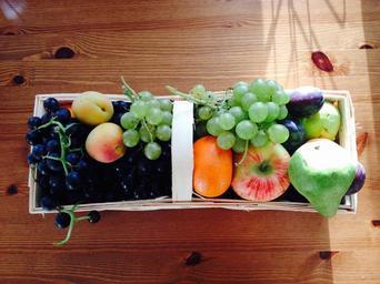 Keywords: fruit fruits grapes apple pear plums apricots orange fruit basket fruit bowl vitamins tangerines nutrition