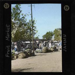 Keywords: Fruit Market, Jammu, ca.1875-ca.1940 (imp-cswc-GB-237-CSWC47-LS10-021).jpg en <br> Fruit Market Jammu ca 1875-ca 1940 Photograph of a fruit market in the city of Jammu Baskets of produce can be seen and there are small huts in the background ; This belongs to a series of Church of Scotland Foreign Missions Committee lantern slides relating to Jammu City which is also known as the City of Temples A mission station occupied by Church of Scotland missionaries was founded here in the late 19th/early 20th century Jammu is also one of the three administrative divisions within Jammu and Kashmir the northernmost state in India Photographer Unknown Filename imp-cswc-GB-237-CSWC47-LS10-021 tif Coverage date 1875/1940 Part of collection International Mission Photography Archive ca 1860-ca 1960 Geographic subject region Jammu and Kashmir Type images Part of subcollection Photographs from the Centre for the Study of World Christianity University of Edinburgh U K ca 1900-ca 1940s Repository name Centre for the Study of World Christianity Archival file impaunpub_Volume7/1737 url Repository address The University of Edinburgh School of Divinity New College Mound Place Edinburgh EH1 2LX United Kingdom Geographic subject country India Format aacr2 1 lantern slide 8 x 8 cm Geographic subject continent Asia Rights Contact the repository for details Part of series In the Temple City of Jammu LS10 Repository email divinity-CSWC ed ac uk Subject lcsh Keyword Marketplaces; Local foods Date created 1875/1940 Publisher of the digital version University of Southern California Libraries Subject aat genre exterior views Format aat lantern slides Legacy record ID impa-m69245 Access conditions http //www ed ac uk/schools-departments/divinity/research/centres/world-christianity/collections-resources File GB 237 CSWC47/LS10/21 1875/1940 author http //digitallibrary usc edu/cdm/ref/collection/p15799coll123/id/64855 PD-old-70-1923 Magic lantern images Images from USC Digital Library uploaded by Fæ International Mission Photography Archive ca 1860-ca 1960 |