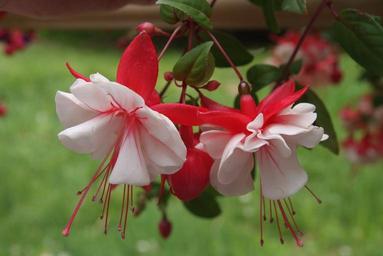 Keywords: fuchsia flowers red white green