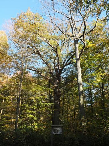 Keywords: Fuenfmarkeiche.jpg en A difficult motive This old oak was the model after which the old 5 Mark coin was designed de Schwer zu fotografieren Die Fünf-Mark-Eiche im Kellenhusener Forst Im Herbst ist wenigstens ein Teil des Baums durch das lichte Laub sichtbar own Juergen starek 2012-10-28 Cc-zero Kellenhusen Ostsee Quercus in Schleswig-Holstein Famous trees in Schleswig-Holstein Kellenhusen |