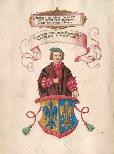 | Keywords: Fugger Ehrenbuch 056.jpg Geheimes Ehrenbuch der Fugger hergestellt in der Werkstatt Jörg Breu d J 1545 “1549<br /> Portrait- und Wappendarstellung http //daten digitale-sammlungen de/~db/0004/bsb00042105/images/ 1545 “1549 workshop PD-old-100 Geheimes Ehrenbuch der Fugger Portraits in Geheimes Ehrenbuch der Fugger Coats of arms in Geheimes Ehrenbuch der Fugger Coats of arms of Fugger von der Lilie family | ||||