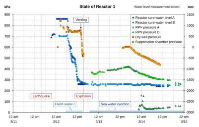 | Keywords: Fukushima I Unit 1 accident reactor data (en).svg en State and events of Fukushima I nuclear power station reactor 1 during accidents March 11 to 14 2011; measurements as published by Tepco http //www tepco co jp/en/nu/fukushima-np/index-e html †’ http //www tepco co jp/en/nu/fukushima-np/f1/images/csv_level_pr_data_1u-e csv own PM3 2011-06-11 Deutsche Version File Fukushima I Unit 1 accident reactor data svg Cc-zero Data graphs relating to the Fukushima I Nuclear Power Plant | ||||