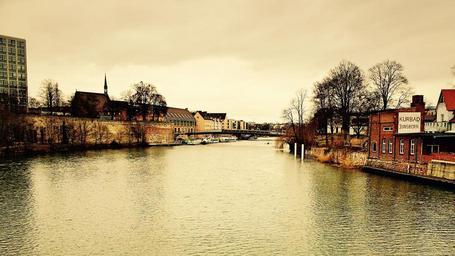 Keywords: fulda kassel bridge homes water building city river sky house on water