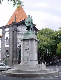 Keywords: Funchal statue Zarco.jpg Joao Goncalves Zarco founded Funchal Madeira in 1425 and his statue stands in the middle of the town centre Looking direction NW 32 38 51 9 N 16 54 34 8 W scale 3000_heading NW own 2001-10-24 Wouter Hagens João Gonçalves Zarco by Francisco Franco 1927 Edifício do Banco de Portugal Funchal 2001 in Funchal