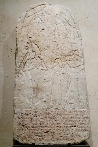 | Keywords: Funerary stele Louvre N329.jpg Funerary stele of Apollōn showing the deceased in Egyptian dress led by Anubis to Osiris Hieroglyphic inscription to Osiris in the upper part and Greek inscription claiming the deceased to be a follower of Anubis of Abydos century 1 AD limestone cm 101 53 8 full form Πατρὶς μέν μοί ἐστι Λύκων όλις· εἰμὶ δ Ἀ ολλώς / ἐν Φαρίηι γαίηι θυμόν οφθίμενος / νή ιος ἡρ άσθην δ ἑκκαιδεκάτου ἐνιαυτοῦ / ἕκτον ωροσύνης μῆνα αρερχόμενος / νῦν δ Ἀϐυδηναίου τὸν Ὀσείριδος μφι ολεὐω / θῶκον καὶ φτιμένων οὐκ ἐ άτησα δόμουω / θανάρων καὶ τέκνα μεμορμένον οἶτον ἐ έσ εν / λλ οἰκεῖ μακάρων Ἠλὐσιον εδίον· ἐνθ ἅμα αισὶ θεῶν με φέρων Κυλλήνιος Ἑρμῆς / ἵδρυσε καὶ Λήθης ούκ ἔ ιον λιϐάδα grc My homeland is Lycopolis I am Apollo / and I have lost my life in the land of Pharos / I was still a child when I was kidnapped at the age of sixteen and a half / after having reached the sixth month of my premature fate / Now I serve the throne of Osiris from Abydos / and I have not set foot / inside the mansion of the dead The sons of the immortals face a predestined death as well / but they dwell in the Elysian plain of the Blessed / Hermes Cyllenius took me there among the sons of the gods / he put me up and I did not drink from the stream of Lethe trans Jiménez San Cristóbal Ma patrie est Lycopolis ; je suis Apollôn ou -ôs / qui a perdu la vie sur la terre de Pharos / Pauvre enfant je fus emporté à l'âge de seize ans / au moment où je dépassais le sixième mois de mon destin prématuré / Maintenant je suis un serviteur du siège d'Osiris abydénien / et je n'ai pas foulé la demeure des morts / Même les enfants des immortels achèvent le sort fixé par le destin / mais ils habitent la plaine élyséenne des bienheureux / C'est là en compagnie des fils des dieux / que m'a conduit Hermès de Cyllène qu'il m'a établi et je n'ai pas bu l'onde du Léthé trad Louvre Institution Louvre object department Egyptian antiquities 11517 A I Jiménez San Cristóbal Do not drink the water of forgetfulness in Tracing Orpheus Studies of Orphic Fragments M Herrero de Jáuregui et al 2011 pp 167 9 André Bernand Greek Inscriptions 1969 pp 294 303 no 73 object history ProvenanceEvent discovery Abydos Bernand 1969 credit line before 1857 accession number Louvre number 329 own photo date 2012-12-02 User Jastrow/cc-by-2 5 artwork license PD-old-100-1923 photo license Cc-by-2 5 other versions Roman-era Greek funerary inscriptions Steles of Roman Egypt Ancient Egyptian funerary steles East Mediterranean in the Roman Empire antiquities in the Louvre - Room 1 Taken with Nikon D300s Taken with Sigma 17-50mm F2 8 EX DC OS HSM |
