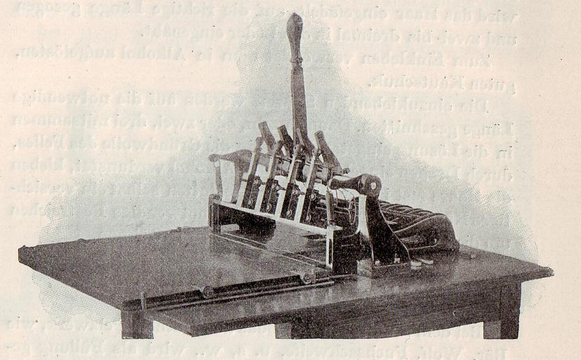 Keywords: Fur-skin fastener (1904).jpg Bildunterschrift Fell-Heftmaschine von G Hoppe et Co Leipzig <br /> Die Maschine arbeitet mit Klammern in einer Länge von 35 mm und konnte etwa 20 Felle heften Die Klammern wurden von oben mit dem Hebel durchgedrückt und dann mit dem Fusshebel umgelegt Sie sollte das žmühsame Stechen der Felle der Kürschnersortimente Bunde mit Nadel und Bindfaden erstzen Der Preis der Maschine betrug 325 bis 350 Mark Machine for fastening fur skins P Larisch Paris Das Kürschner-Handwerk Larisch u Schmid unter Mitarbeit hervorragender Fachmänner 2 Jahrgang Nr 15 + 16 II Teil Jan - Febr 1904 Kapitel Hilfsmittel S 29 ca 1904 P Larisch PD-old Fur trade Fur working tools Black and white photographs of machines Das Kürschner-Handwerk Paul Larisch und Joseph Schmid II S 29 Fur fashion in 1904 |