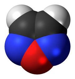 Keywords: Furazan-3D-spacefill.png Space-filling model of the furazan molecule also known as 1 2 5-oxadiazole a heterocycle and a simple aromatic ring Colour code 505050 Carbon C black<br> F0F0F0 Hydrogen H white<br> F51E1E Oxygen O red<br> 3C50FA Nitrogen N blue<br> 2011-05-31 own DS Visualizer Jynto talk Ball-and-stick version cc-zero Oxadiazoles Simple aromatic rings Images by Jynto Space-filling models |