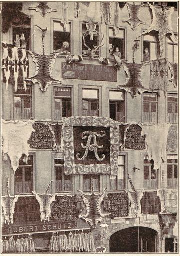 | Keywords: Furs by Schutz&Woebke.jpg Furs in Leipzig Germany Dekorationen der Firmen Robert Schütz und Fr Carl Wöbke Leipzig Brühl 55 beim Einzug Sr Majestät König Friedrich August III in Leipzig <br/> Decoration de maisons Robert Schütz et C Wöbke à Leipzig à occasion de la visite du roi de Saxe en cette ville en 1904 <br/> Decorations prepared by Robert Schütz and C Wöbke Bruhl to celebrate His Majesty the King of Saxon`s visit to Leipzig in 1904 Hans Würzburg Rauchwaren P Pellifex No 1 Die Annalen der Kürschnerei / Les Annales de la Fourrure / Annals of furs Die Pelzmosaik / La Mosaïque en Fourrures / The Furs Mosaic Verlag / Éditeur / Editor M Melzer Frankenstein Schlesien Deutschland / Allemagne / Germany A Paris chez J Strasky 236 rue du Fbg-St-Martin S 45 1904 --Kuerschner 19 41 27 February 2008 UTC <gallery>Furs by Schutz Woebke Leipzig cropped jpg</gallery> PD-old Furs Furriers Fur carpets Brühl Leipzig Shop windows in Leipzig Furrier's shops Schütz Wöbke Furriers in Leipzig Schutz Woebke Fur wholesale dealers in Leipzig Schütz Wöbke Leopard fur-skins Guereza fur-skins Guanaco fur-skins Skunk fur-skins Antlers Giraffe fur-skins Wolf fur-skins Civet cat fur-skins Taxidermied lions Platypus fur-skins Intermediate furs Fur bundles Die Pelzmosaik - La Mosaïque en Fourrures - The Fur Mosaic P Pellifex 45 Fur fashion in 1904 |