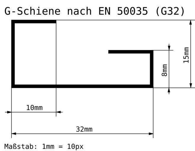 | Keywords: G-Schiene EN 50035 (G32).svg ValidSVG en G-rail following EN 50035 G32 German version de G-Schiene nach EN 50035 G32 Deutsche Version Own Fleshgrinder 2009-04-27 Fleshgrinder Template Translation possible DIN standards EN standards Geometric dimensioning DIN rail drawings |