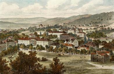 Keywords: G Theuerkauf - Tübinger Universitätsviertel kolHolzstich 1877.jpg de Tübinger Universitätsviertel zum 400-jährigen Jubiläum der Universität Holzstich koloriert 23 4 x 35 3 cm Bild ; 26 x 37 2 cm Blatt Der Holzstich zeigt folgende Gebäude der Universität Tübingen die Augenklinik das Botanische Institut die Neue Aula die Chirurgische Klinik das Physiologische Institut die Medizinische Klinik das Pathologische Institut die Turnhalle und das Reithaus http //www ebay de/itm/TUBINGEN-Universitatsgebaude-kolorierter-Holzstich-1877-/251579080160 hash item3a93481de0 g -cgAAOSwwNVTtvMa ht_853wt_940 eBay 1877 author after after PD-old Gottlob Theuerkauf Photographs of Tübingen by Paul Sinner General views of Tübingen Neue Aula Tübingen 1877 in Tübingen |