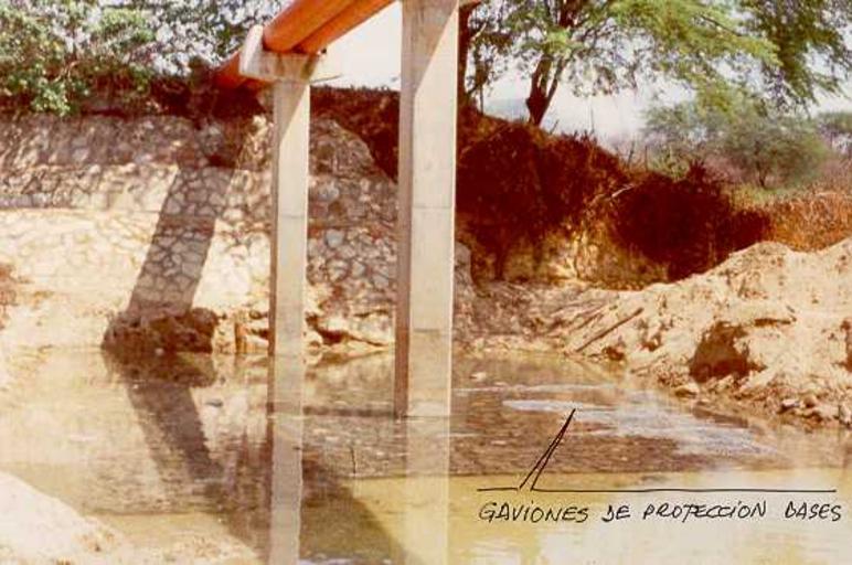 | Keywords: Gabbiones para evitar erosión en los pilares de un puente tubo.jpg Protección flexible con gabiones en la cabecera de un puente tubo para cruzar un dren natural Lugar norte del Perú Autor Alfredobi Fecha aprox 1999 2006-03-01 own assumed Alfredobi Buildings in Peru |