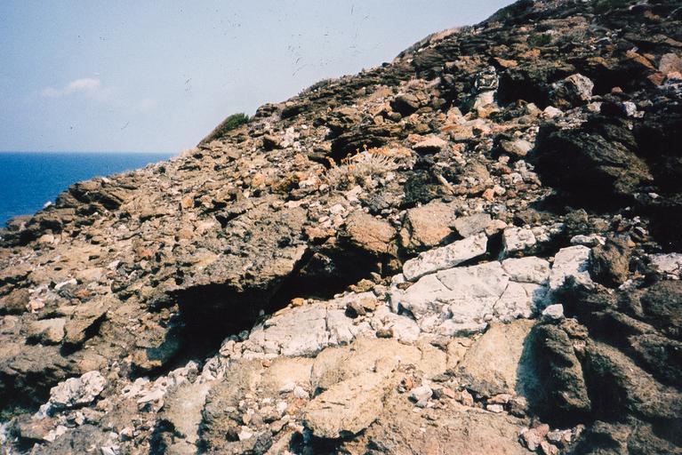 | Keywords: Gabbroic vein in peridotite, Cap Corse.jpg  en White-gray gabbro vein in dark brown peridotite northern slope of the Monte Maggiore at Ersa Cap Corse Haute-Corse Corsica Summer 1995 fr Veine de gabbro blanc-gris dans une péridotite brun foncé versant nord du Monte Maggiore à Ersa Cap Corse Haute-Corse Été 1995 2014-05-11 02 34 50 own Cardioceras 43 003 9 356 Taken in summer 1995 near Sémaphore du Cap Corse looking northeast cc-zero Uploaded with UploadWizard Geology of Haute-Corse Cap Corse Peridotite Gabbro Dikes volcanism in France |