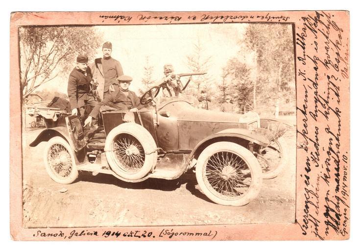 | Keywords: Galicia, 20th of October, 1914.jpg en Live on the 20th of October 1914 Sanok Galicia the Austro-Hungarian Monarchy A fényképfelvétel 1914 október 20 “án készült a keleti fronton A fényképet egy tábori postai levelezÅ‘lapra ragasztotta a levelezÅ‘lap feladója A felragasztott fénykép melletti szöveg Sanok Galicia 1914 okt 20 Sógorommal Szerencsésen érkeztem K Ruttkája jött elibém Kedves Anyádnak és Néked nagyon köszönöm a kitűnÅ‘ kvártélyt Meddig maradhatunk itt Csókol Valéria Eperjes 1914 nov 10 Az orosz csapatok 1914 augusztus 18 -án indÃtottak hadműveletet GalÃcia irányában Elfoglalták Lemberget ostrom alá vették Przemysl-t és a Monarchia csapatait a Kárpátokon túlra szorÃtották Szivélyes üdvözletek és kézcsók Kálmán Forrás Az ausztropolonizmus utolsó békeévei http //www valosagonline hu/index php oldal cikk cazon 739 lap 0 2012-03-25 saját tulajdonban álló képeslap author Custom license marker 2012 03 25 PD-old-70 Uploaded with UploadWizard Automobiles in Sanok 1914 Metapolisz Historical images of PreÅ¡ov |