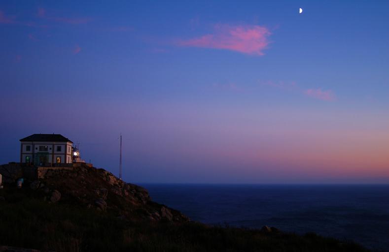 Keywords: galicia fisterra night moon lighthouse cape finisterre blue landscape nature beauty sea dusk background twilight background image sunset costa serenity sky zen peace