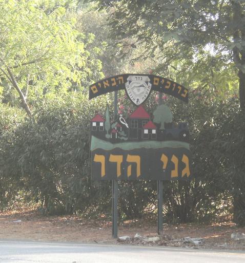 Keywords: Ganei Hadar 1.JPG en sign at entrance to Ganei Hadar Gezer Regional Council Israel he ש ט בכניסה יישוב הקהי תי גני הדר מועצה אזורית גזר ישרא own Ravit 2010-08-27 Ganei Hadar Settlement name signs in Israel