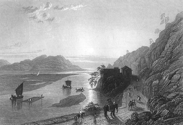 | Keywords: Ganges River at Haridwar - 1858.jpg Emerging from the Keeree Pass the road proceeds in the direction of Hurdwar Haridwar the Gate of Vishnu near the point at which the sacred waters of the Ganges enter the plains of Hindoostan The scenery around Hurdwar affords some of the most splendid landscapes which are to be found on the bright and beautiful river whose majestic course is diversified by so many interesting objects The town stands at the base of a steep mountain on the verge of a slip of land reclaimed from the forest and surrounded on all sides by thick jungle The leafy fastnesses of the Deyrah Dhoon appear immediately above the pass; and below the uncultivated wastes of the Terraic stretch their wildernesses for many miles The locality about Hurdwar has for ages been held in high veneration by the worshippers of Vishnu and the town itself is one of the most frequented resorts of Hindoo pilgrims who flock thither from all parts of India to perform their devotions in the mystic stream at the moment of its emancipation from the untrodden recesses of the vast Himalaya in whose profound solitudes the infant waters spring from their everlasting fount To behold the Ganges at the moment in which its faith-inspiring current bursts into freedom from its mountain boundary and glides in one broad stream along the plain is to the exhausted devotee who has endured weeks perhaps months of fatigue and privation consequent upon a painful and hazardous journey an ample recompense for all his toil and suffering He gazes enraptured on the holy river and gathering up his failing strength to the task presses onward but too happy to yield up life with the first plunge of his body in the hallowed wave Guided by faith in the doctrine of his race the worshippers ofBramah believe that a blessed immortality is secured to the person who shall thus end his earthly career and consequently many who are wearied of life or are anxious to enter scenes of purer enjoyment will cheerfully commit suicide or if too weak to perform the act themselves will prevail on their nearest friends to accelerate the progress of dissolution by leaving their bodies to float down the sacred stream while their souls are absorbed in the Divine Essence It is at this point of emergence from the hills that persons journeying from a great distance are anxious to fill their jars with water that their homes may be hallowed by a portion of the sacred element Rich and pious Hindoos who inhabit the provinces remote from this spot spend large sums of money in procuring it by means of messengers who are employed specially for the purpose The water-pots are oftentimes conveyed to their destination in a picturesque manner being enclosed in a framework decorated with flowers and feathers and slung upon bamhoos resting on the shoulders of long files of men who will convey it thus without contamination for several hundred miles The bearers of the sacred fluid although enjoying immunity from danger from all other enemies are yet frequently waylaid and murdered by the Thugs who consider murder to be an act of duty towards their goddess Bhowannee the destructive power; and who will murder the poorest victim that falls in their way to propitiate their deity and induce her to provide them with richer sacrifices Beyond the point at which the Ganges enters the plains to its final junction with the ocean a distance of 1 200 miles it flows smoothly and placidly along occasionally vexed and ruffled bytempest or assuming an alarming degree of velocity when swollen by the melting of the snows its strong current glides with the speed of an arrow There are however no cataracts in its long descent towards the sea the fall being somewhat less than a foot a mile through a channel which varies in width very considerably in different places and at particular seasons' until as the mighty river approaches the ocean it spreads out its waters afar pouring them forth in a flood ten miles broad The Ganges is not fordable below its confluence with the Jumna at Allahabad; but though it may be crossed by men and animals at several places previous to its junction with that tributary the navigation is not interrupted from the spot in which it enters the plains Its rise is seldom above thirty-two feet; but when it reaches this height it spreads over the adjacent country like a sea inundating the low land and frequently destroying whole villages; those that remain rising like islands in the midst of the watery waste The waters of the Ganges are so charged with earthy particles that when the floods begin to subside the quantity of alluvial matter deposited is inconceivably great; and an instance is recorded in which a branch of the river was filled up nearly to a level with the adjacent country in the space of a week the material deposited being equal to 900 000 000 solid feet Between the mountains and the sea the stream of the Ganges is augmented by the contributions of eleven large rivers some of which are equal in magnitude to the Rhine and none are less than the Thames Its extreme length from its source to the sea is estimated at 1 560 miles http //cgi ebay com/India-GANGES-RIVER-AT-HARIDWAR-Antique-1858-Art-Print_W0QQitemZ270227091744QQihZ017QQcategoryZ360QQtcZphotoQQcmdZViewItem ebay Antiques - THE GANGES ENTERING THE PLAINS NEAR HURDWAR also http //cgi ebay com/India-GANGES-RIVER-AT-HARIDWAR-Antique-1858-Art-Print_W0QQitemZ270227091744QQihZ017QQcategoryZ360QQtcZphotoQQcmdZViewItem for details 1858 anonymous PD-old-70-1923 Historical images of Haridwar 1858 in India Ganges River in art Mountains of India in art Ganges River in Haridwar |