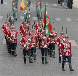 Keywords: Garde nationale bulgare.jpg A detachment of the National Guards Unit of Bulgaria marching in the 2007 Bastille Day military parade on the Avenue des Champs-Elysées in Paris détachement de la Garde nationale bulgare au cours du défilé du 14 juillet 2007 sur les Champs Elysées à Paris own 2007-07-14 davric Aiguillette Bastille Day 2007 military parade in Paris Color guards of Bulgaria Flags in France Full dress uniforms Goose step Military rituals National Guards Unit of Bulgaria Photographs of military flags of Bulgaria Frogs fasteners National guards Bulgaria |