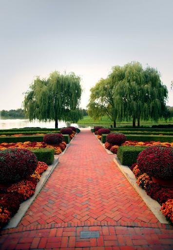 Keywords: garden brick path nature gardening fall colors outdoor plant bright bloom vertical