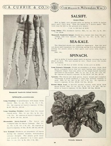 | Keywords: Garden and farm seeds (15750235954).jpg A CUR RIE CdT gM <br> 130 Wisconsin St Milwaukee Wls 5£ <br> Mammoth Sandwich Island Salsify <br> SPINACH -CONTINUED <br> Long Standing ” A good keeper with large thick <br> leaves Pkt 5c; oz 10c; lb 15c; 1 lb <br> 35c By express at buyer's expense 10 lbs <br> 1 60; 100 lbs 15 00 <br> Long Standing Priekley ” Later than the round <br> leaved sorts Pkt 5c; oz 10c; Vi lb 15c; <br> 1 lb 35c By express at buyer's expense 10 <br> lbs 1 60; 100 lbs 15 00 <br> Rloomsdale Savoy-Leaved ” The leaves are <br> crumpled like the Savoy Cabbage Pkt 5c; <br> oz 10c; Vi lb 15c; 1 lb 35c By express at <br> buyer's expense 10 lbs 1 60; 100 lbs 15 00 <br> New Zealand ” Produces an abundance of leaves <br> during the summer months withstanding <br> extreme drought The plants grow large <br> and should be planted 2 to 3 feet apart <br> Pkt 5c; oz 10c; lb 20c; 1 lb 60c <br> SALSIFY <br> Oyster Plant <br> Sow in light rich ground early in spring in drills 12 inches <br> apart and 1 inch deep Thin the plants to 3 inches apart The <br> roots may be left in the ground over winter - <br> 1 oz to 100 feet of drill <br> Long White ” The standard variety Pkt <br> 1 lb 1 00 <br> 5c; oz 10c; lb 30c; <br> Mammoth Sandwich Island ” Grows to a larger size than the pre- <br> ceding and very smooth Pkt 5c; oz 10c; lb 30c; 1 <br> lb 1 10 <br> SEA-KALE <br> The blanched shoots are cooked as Asparagus Sow the seed <br> out-doors and transplant the following spring to a sheltered place <br> setting the plants about a foot apart and cover with litter to <br> blanch <br> Pkt 10c <br> SPINACH <br> Sow in drills 12 inches apart early in spring covering the seed <br> about an inch The soil should be rich Plant every two weeks <br> for succession <br> 1 oz to 100 feet of drill; 10 lbs to the acre in drills <br> Long Season's Triumph ” Yields an abundance of large thick dark <br> green crumpled leaves that are more lasting and retain their <br> crispness longer than any other of the large-leaved varieties <br> and slow to run to seed Pkt -5c; oz 10c; lb 15c; 1 lb 40c <br> By express at buyer's expense 10 lbs 2 00; 100 lbs 17 50 <br> Victoria ” The leaves are dark green heavy broad and crumpled <br> remaining in good condition a long time without running to <br> seed Pkt 5c; oz 10c; lb 15c; 1 lb 35c By express at <br> buyer's expense 10 lbs 1 60; 100 lbs 15 00 <br> Round Thick Leaf ” A favorite market variety with thick dark <br> green leaves Pkt 5c; oz 10c; lb 15c; 1 lb 35c By ex- <br> press at buyer's expense 10 lbs 1 60; 100 lbs 15 00 <br> Victoria Spinach <br> 20 42156478 132761 65916 Page 26 Text http //www biodiversitylibrary org/page/42156478 1912 10 5962/bhl title 65916 A Currie Company ; Henry G Gilbert Nursery and Seed Trade Catalog Collection NameFound Asparagus NameConfirmed Asparagus var pygmaeus Makino EOLID 10487111 NameFound Victoria NameConfirmed Victoria EOLID 34123 NameBankID 897688 Biodiversity Heritage Library Garden and farm seeds spring 1912 Garden Stories Bulbs Plants Catalogs Equipment and supplies Flowers Gardening Nurseries Horticulture Plants Ornamental Seeds Vegetables U S Department of Agriculture National Agricultural Library bhl page 42156478 dc identifier http //biodiversitylibrary org/page/42156478 bhlGardenStories BHLinbloom bulbs plants nurseries horticulture plants ornamental u s department of agriculture national agricultural library bhlgardenstories bhlinbloom Information field Flickr posted date ISOdate 2015-01-26 Check categories 2015 August 25 CC-BY-2 0 BioDivLibrary https //flickr com/photos/61021753 N02/15750235954 2015-08-25 06 54 32 cc-by-2 0 PD-old-70-1923 Garden and farm seeds 1912 Photos uploaded from Flickr by Fæ using a script |