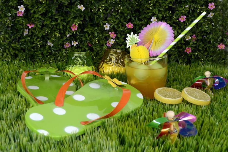 Keywords: garden party drink tea lights colorful candles lights color decoration flip flop shoes pinwheel straw ice throws meadow enjoy chill out relax party sommerfest