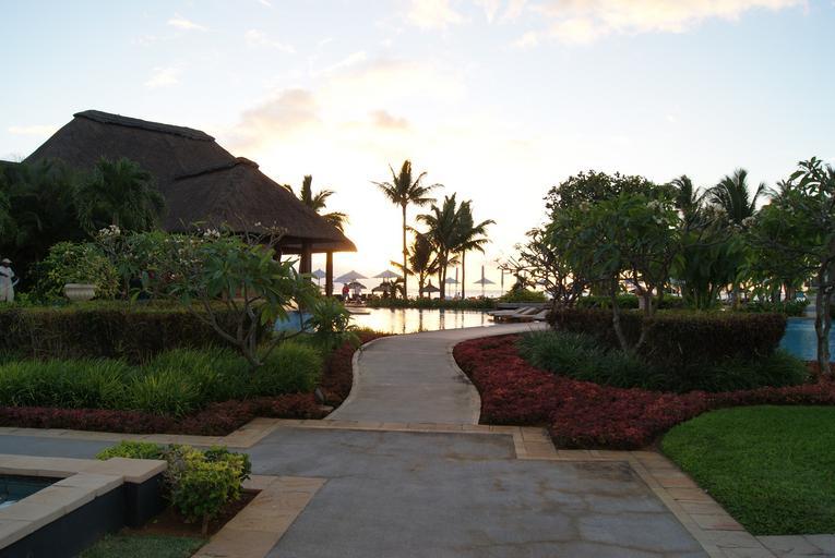 Keywords: garden pool sunset beach water luxury outdoor resort relaxation relaxing relax vacation leisure