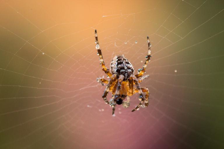 Keywords: garden spider araneus diadematus spider cobweb spider macro close animal spider webs floating safety net network insect hairy araneus arachnid drop of water