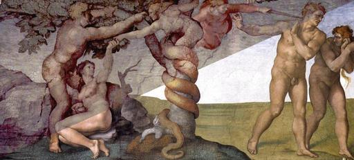 Keywords: Gardenbeforeandafter.jpg The Fall and Expulsion of Adam and Eve in the Sistine Chapel before and after restoration I had some difficulties aligning the images exactly perhaps because the painting is not entirely a flat surface Combination of Image Michelangelo Buonarroti 022 jpg pre-restoration image and Image Forbidden fruit jpg post-restoration image 1509 Michaelangelo PD-100 Before and after images of restored paintings Sistine Chapel ceiling - Fall and Expulsion from Garden of Eden Conservation-restoration |