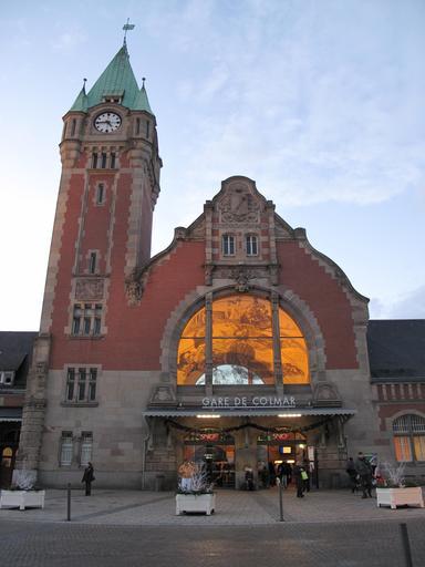 | Keywords: Gare de Colmar.jpg en Colmar railway station Haut-Rhin France fr La gare de Colmar own Tangopaso 2010-12-19 48 4 20 2 N 7 20 50 37 E region FR_heading WNW Gare de Colmar Clock towers in Haut-Rhin Clocks in Haut-Rhin Train station clocks in France |
