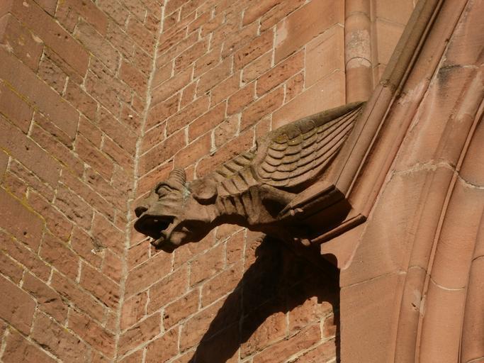 Keywords: gargoyle sculpture st vitus rheinsheim architecture cathedral old statue stone chimera demon decoration symbol creature fantasy church building religious historic