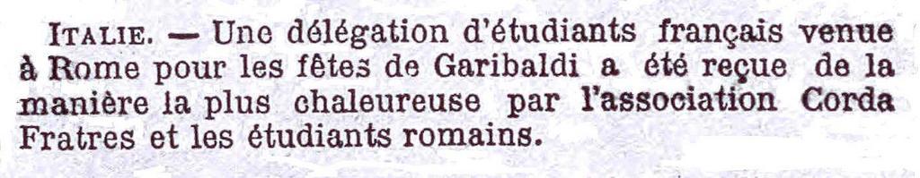 Keywords: Garibaldi Corda Fratres.jpg fr Information sur les étudiants français romains et la Corda Fratres Le Temps anonymous 1907-07-04 Domaine public PD-old Corda Fratres Le Temps French newspaper