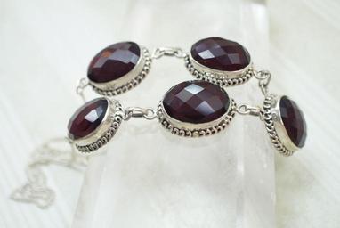 Keywords: garnet quartz necklace crystal faceted stone setting bezel choker chain handmade silver sterling silver jewelry jewel gemstone gemstones accessory style semiprecious
