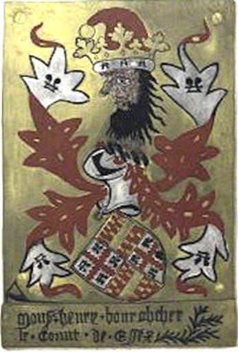 | Keywords: GarterPlateHenryBourchier 1stEarlOfEssex.jpg en Garter stall-plate of Henry Bourchier 1st Earl of Essex 2nd Count of Eu 1404-1483 nominated as a Knight of the Garter in 1452 St George's Chapel Windsor Castle Inscribed above Mons Henry Bourcheher le Count de Essex Arms 1st 4th Bourchier; 2nd 3rd Gules billety or a fess argent Louvain feudal barons of Little Easton Essex for the mother of the 1st Count of Eu Eleanor de Louvain d 1397 Crest A man's Moor's head in profile proper ducally crowned or with a pointed cap gules; Vivian Heralds' Visitations of Devon 1895 p 106 http //www google co uk/imgres imgurl http //www cracroftspeerage co uk/online/content/sjh 252061 2520henry 25201st 2520viscount 2520bourchier jpg imgrefurl http //www cracroftspeerage co uk/online/content/essex1461 htm h 363 w 255 sz 29 tbnid Ubaoz7PWbiwlgM tbnh 123 tbnw 86 zoom 1 usg __U6yImsrAMh97_HsTEOgleLMKEyU docid UDt_snDmv0DhLM sa X ei tQeOUp7oJrSg7AaZ2YF4 ved 0CDsQ9QEwBQ Unknown artist circa 1452 Photo 21st century PD-old-100 Stall plates of Knights of the Garter Bourchier arms Bourchier garter plates Louvain arms |