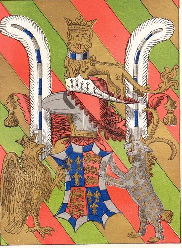 | Keywords: GarterPlateJohnBeaufort.jpg of cap of maintenance omitted argent added to descr of helm crest langued gules Source Planche J R Pursuivant of Arms 1851 frontispiece blazon p xx 1851 Planche J R Stall plates of Knights of the Garter Caps of maintenance Coats of arms of John Beaufort 1st Duke of Somerset PD-old-100 |