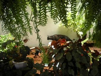 Keywords: Gatanegra.JPG Descripción foto de una gata en un jardín de plantas tropicales tomada con camara digital Fuente trabajo propio Fecha 14/04/06 Autor es Author del fichero Permiso foto tomada por mi 2006-04-14 own assumed Paolacha Domestic cats