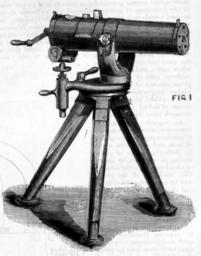 Keywords: Gatling Gun (5 barrels) - The Engineer 1881-01-21.png en In January 1881 the Royal Navy conducted a series of tests with seven different marks of machine guns This is the 5-barrel Gatling gun The tests were described in the periodical The Engineer January 21 1881 on page 42-44 along with a number of illustrations The Engineer 1881-01-21 page 42 http //www gracesguide co uk/images/4/4f/Er18810121 pdf Link to source at gracesguide co uk creator Unknown 1881 The Engineer magazine 1881-01-21 Gatling guns PD-old-70-1923 |