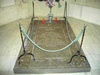 | Keywords: Gauditomb.jpg en Grave of Antoni Gaudí at Sagrada Família Church crypt Barcelona own Bocachete 2009-09-23 Antoni Gaudí Crypt of the Sagrada Família Tombs in Catalonia Rope barriers Naturally occurring catenaries Gravestones Grave and memorial fences |