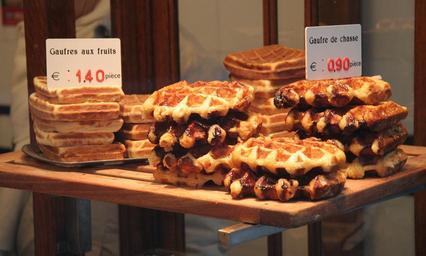 Keywords: Gaufre liege 2.jpg In the foreground Liège style waffle In the background Fruits waffle Liège style waffle en Liège Waffle fr Gaufre de Liège nl Luikse wafel de Lütticher Waffel Author Jacques Renier Date taken 13 DEC 2005 Place city of Liège Belgium Personal picture I set it public domain 2005-12-13 own assumed Jrenier Waffles Street food in Belgium |