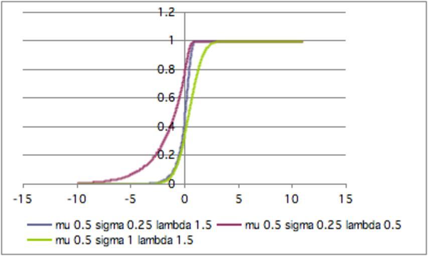 Keywords: GaussianMinusExponential CDF.png en This is a CDF of the Gaussian minus Exponential distribution own Liam herron Probability distributions